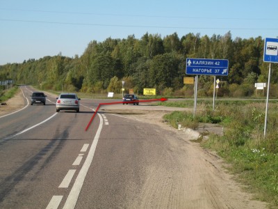 В С-Посаде (или объехав его по ярославке свернуть на бетонку (А108) в сторону Дмитрова) поворачиваем на Р104 (Калязин, Углич) и едем до указателя на Нагорье (около 40 км от пересечения с бетонкой)