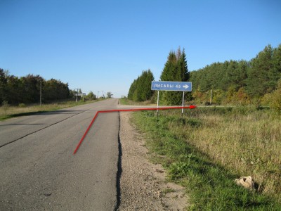 поворачиваем направо, едем приблизительно 23км до поворота на Лисавы (1 по легенде)