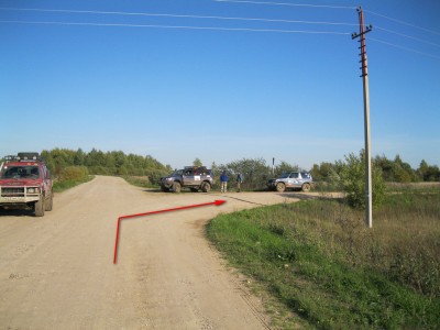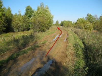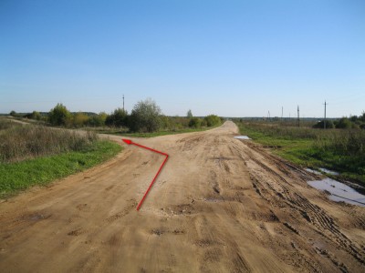 Поворачиваем направо и едем по дороге прямо 1,1км. За деревней Григорово поворачиваем опять направо (2 по легенде)